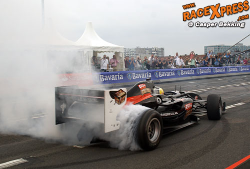 ROTTERDAM - Robert Doornbos heeft in zijn thuisstad voor een daverende show gezorgd tijdens de zevende editie van Bavaria City Racing. De oud F1-coureur gaf een spetterende demonstratie weg in de 750 pk sterke Superleague-bolide. Tussen de rookwolken door maakte RaceXpress onderstaande foto's/